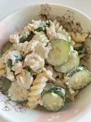ツナときゅうりのマカロニサラダを作りました。(ツナ、きゅうり、マカロニ、マヨネーズ、塩コショウ)