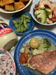 昨日の夕飯にアクアパッツァを作りました。オリーブオイルとマヨで煮ました。それから久し振りにメロンパンを作りました。プレーン・ザラメ・コーヒーの3種類です。
