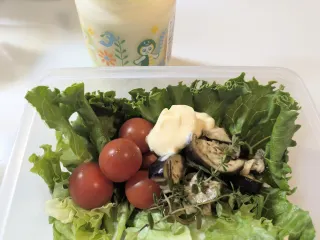 牛丼、サンラータン、煮物、サラダです。いつもどおり、サラダはマヨネーズでいただきました。ちゃんと並べて撮ればよかったです。