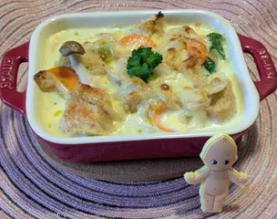 miko さん パングラタン、こんがりよい色に焼けていてとても美味しそうですね❗️ さつまいもや豆乳を使われていて腸活にもいいと思います😊 芳醇トリュフ味、私は味わったことがありませんが、購入されてよかったですね❗️ パセリ🌿が可愛い💕