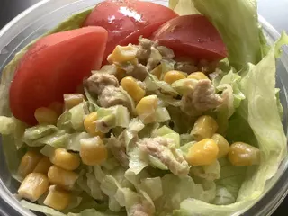 ツナ&コーン入りコールスローサラダを作りました。コッテリ系のカレーライスと合わせたのでレモン果汁とレモンの皮のすりおろしも入れました。