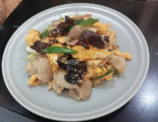 ムーシーロー 生きくらげが手に入りました。豚肉、卵、ねぎで作りました。優しい味に仕上がりました。素麺と一緒に朝ごはんで頂きました。 マヨネーズたっぷりの卵がふっくらと美味しかったです。フライパンで豚肉、きくらげを炒めて、フライパンの端に寄せて空いたスペースで卵を炒めねぎを加えさっと火をとおして完成。フラ