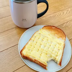 朝ごはん 食パンにとろけるチーズのっけてキューピーマヨネーズかけてトーストしたのを毎朝食べてます。