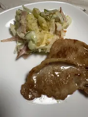 生姜焼きの付け合わせにポテトサラダ🥗を作りました。マヨたっぷりにレモン汁🍋少々。定番の味。美味しく頂きました🙏