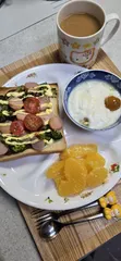 モーニングSet3☕🍞ピザトースト 朝食に魚肉ソーセージとブロッコリーを頂いたのでマヨネーズたっぷりで🍕ピザ風トーストです😆🎵🎵