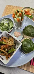 ワンプレート 夕食にきゅうり尽くし~ ☘️作り置きおかずの蓮根&きゅうりの甘辛マヨ炒め🥒しらす入りきゅうり酢の物🥕きゅうりと人参スティック(マヨ梅干ディップ)🥒太鼓ときゅうりのぬか漬け🍙ばら寿司のシソおにぎり(マヨ酢飯) 食べごたえのあるワンプレートでした✌️