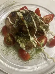 買ってきたたこ焼きが、味気ないので、ガラスのお皿に重ねてマヨ、青のり、🍅を盛り付けしました✨パックのまま食べると洗い物もないんけど、見た目大事ですね