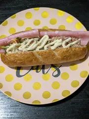 コッペパンサンド コッペパンにハムとコールスローを挟んで芳醇トリュフ味マヨをかけました。美味しく頂きました。