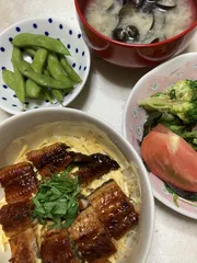 昨日は土用の丑の日でしたので「鰻のひつまぶしとしじみの味噌汁」を作りました。錦糸卵を焼く時にマヨを混ぜました。暑さに負けずに頑張らねば😅