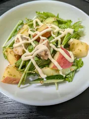 オクラと竹輪の明太マヨネーズ和えです。オクラのネバネバに明太マヨネーズがからんで美味しく頂きました。