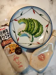 ゴーヤ💚とトリュフマヨ💛の内緒話🤫 また、ゴーヤのマヨサラダ🥗を作ろうとして…ふと、刻んだゴーヤにトリュフマヨ付けて食べたら、お味見のはずが止まらなぁ〜い!ひとりで大きなゴーヤ1/2本くらい食べちゃった🤣作る人の特権さ!でもコレ内緒🤫当然✨トリュフマヨ💛だいぶ減ちゃった💦ふぅ~、次のトリュフマヨ💛ストックして置いて良かったぁ〜💞ゴーヤ