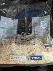 お皿にのせて、マヨかければ簡単サラダ。QPとかかわりある、サラダクラブのカット野菜です。