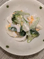 ブロッコリーにマヨネーズが大好きです今回は卵、新玉ねぎと一緒に和えてみました