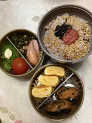 今朝作った、主人に持たせたお弁当です。玉子焼きにマヨを混ぜてます❗️毎日、こんな感じです😅