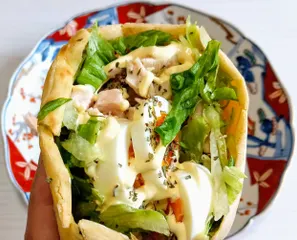 タピオカの粉に卵を溶いてフライパンでクレープ風に焼けば、クレピオカ✨中には鶏の親子を入れてマヨして巻き巻きしたら、出来上がり🎶