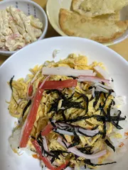 豆腐は水気を切って裏ごししました。入れた具材は、鶏ひき肉、カブ、キャベツの千切りを鰹出汁のつゆ、砂糖で煮込んだもの。手作り錦糸卵。そこにマヨネーズを混ぜ合わせてみました。マヨネーズを、合わせても違和感はありませんでした。でも、写真の量だとマヨ感はありません(どこ行った?)でも滑らかさが出ました。隠し