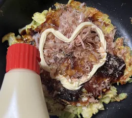 キャベツ多めのお好み焼きを作りました!お好み焼きにマヨネーズは欠かせません😋