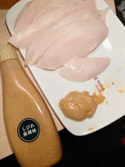マヨネーズ+世界マヨ(しびれ麻辣味)+金山寺味噌+みりん厚揚げに塗りオーブントースターで焼きました。