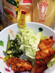 まぜマヨ(わさマヨ) レタスが久しぶりに安くなっていたので、世界を味わうマヨのコク深アイオリ味で食べました😋おいしいピーマン&アスパラ炒めは、わさび&マヨネーズで味つけ🍀何か物足りない気がしました。もう少し別のものでまた考えよう😅むね肉のから揚げは他の調味料使用ですが、いつかまぜマヨで味つけしてみたいです