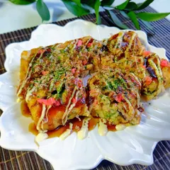 四角いたこ焼きです。卵焼き器で焼きます。タコいっぱい🐙🐙🐙🐙🐙🐙入れたのですが、断面からはあまり見えて無いですね😅しかも生地緩めだったので崩れてしまっています…( っ゚、。)っパタッたこ焼き器出さなくていいからいいですよ(❛ᴗ˂ )⌒♥.。