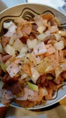 グリーンキューピーマヨ炒め マヨ炒めで出汁パックの中身でそのまま味付けが高評です😋✨ノーザンルビーという皮も中身も赤いじゃがいもです。なめらかな美味しいじゃがいもです。さいの目に切るとまるでベーコン(笑)ピーマンも美味しいと食べてくれたので、にんじんも細切りにして入れました。