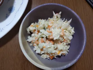 コールスローサラダに味噌を入れました。あとはマヨネーズ、砂糖(三温糖)、酢、コショウ。塩気が強かったのか?水分が出てしまいました。 味噌を入れたこの味は…あの味に似ている。でも思い出せない🤯息子は「ハンバーガー🍔グミキャンティの味に似ているー」と。…えっ、そうなの???
