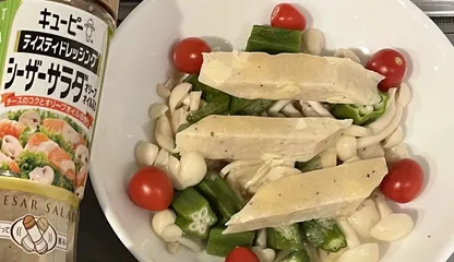 今日はドレッシングで🩷 キユーピーテイスティドレッシングのシーザーサラダで美味しくいただきます🤤 ちゃんとマイストックに登録したよ👍