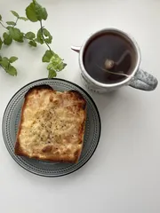 朝ごはん スクランブルエッグにマヨネーズでトーストしました😋