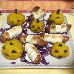 今夜はかぼちゃ🎃 カボチャとさつま芋のマヨサラダとカボチャのホワイトシチューを作り始めたら3丁目のお母さんがカボチャと豚肉の煮物とカボチャの挟み揚げを届けてくださいました。 今夜はカボチャ、カボチャ、カボチャな我が家です🤣