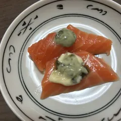 お醤油で食べた後味変サーモンにバジルマヨ😋