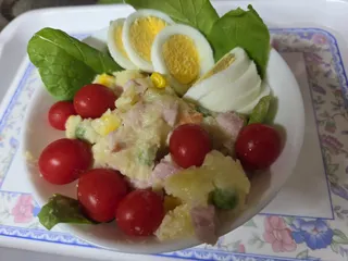 秋はポテサラ ベランダ農園で作ったベビーリーフとミニトマト、家の近くの養鶏場で購入した卵を添えて。これだけでもご馳走です。秋はポテサラが美味しいですね。じゃがいもで作るのがスタンダードですが、さつまいもでも作ってみたいな。