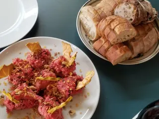 💜ビーツのポテトサラダ💜 時々作るビーツ入りのポテトサラダです。 茹でたビーツを角切りにし、塩とビネガーでマリネしてから、マヨネーズベース味付けのポテトサラダに加えます。 美味しく色鮮やかで大好きな一品です🎵