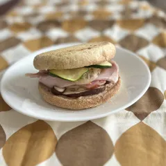 定番の朝サンドイッチ🥪今回は全粒粉のマフィンにトリュフマヨ+しいたけ、ズッキーニにオリーブオイル+塩胡椒→焼いてから、しいたけの上にもう一度トリュフマヨ+モモハム+オニオンサラダ。もう何度も書きますが、トリュフマヨかけると、美味しさが増し増し!定番商品にしてくださーい!