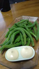 いんげん豆にブチュッとマヨネーズ いんげん豆収穫 ブチュッマヨネーズWで美味しく頂きました🥢