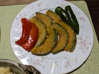 カボチャのマヨソテー レンチンカボチャのマヨソテー、レンチン時間が長すぎて柔らかくなり過ぎてマヨネーズをしっかり吸い取ってしまいました。美味しいからいいんですけど🤭お休みの今日はあれこれ用事を済ませていたら晩ご飯作る気力まで使い果たしたみたいでスーパーお惣菜の唐揚げです。添えたキャベツは今夜は深煎りごまドレッシングです。