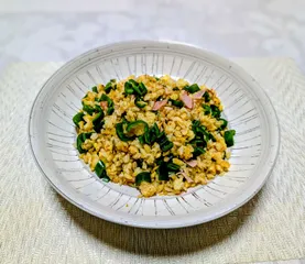 マヨ炒めの、納豆炒飯♪ 冷凍ご飯を消費したくて、ランチに納豆炒飯を作りました(^^)マヨで炒めて、パラッと♪
