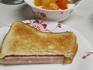 ハムチーズトースト(世界マヨ 芳醇トリュフ味) Ⅰ枚の片面にのみ 世界を味わうマヨ 芳醇トリュフ味を塗りハム、チーズを挟んでトーストしました。