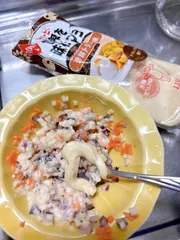 張り切ったのに、マヨネーズを冷蔵庫に戻したら📷忘れました〜