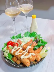 エビフライ揚げてもらいました🍤 1本の1/2強、一回で使い切りとか😅食べすぎやん タルタル 撮影後に、タルタル残量かけてます🤣