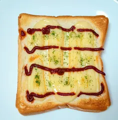 マヨチーズトースト。とろけるチーズ→マヨネーズ→ケチャップの順にのせてトースト。簡単だけど美味しくてお気に入りです😊