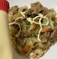 焼きそばにマヨネーズ+カラシをつけていただきました🍴😋美味しかったです🤗✨
